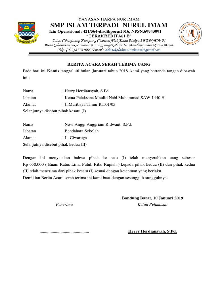 Contoh Surat Berita Acara Serah Terima Uang Nusagates