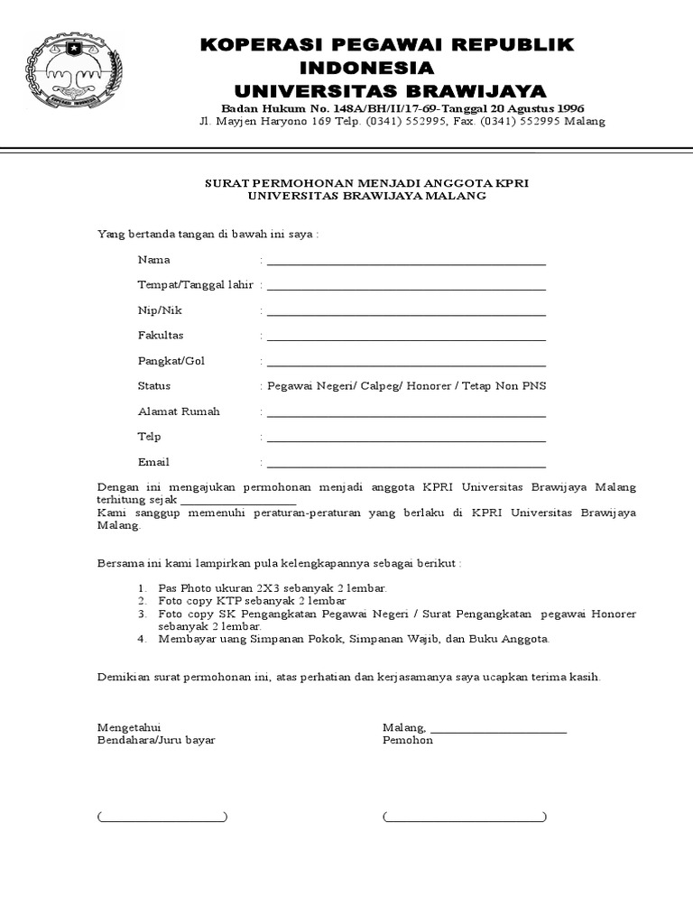 Yuk simak 5+ surat permohonan menjadi anggota koperasi. Dengan menjadi anggota maupun pengurus koperasi sudah pasti anda akan mendapat banyak manfaat. Koperasi-koperasi peneroka Felda yang didaftarkan di bawah Akta sebagai koperasi asas atau. Dan untuk keperluan tersebut saya bersedia memenuhi ketentuan yang berlaku di Koperasi Swadharma. Lihat juga tentangsurat dan surat permohonan menjadi anggota koperasi Tuan Saya memohon berhenti menjadi anggota Koperasi ini dan maklumat-maklumat saya adalah.