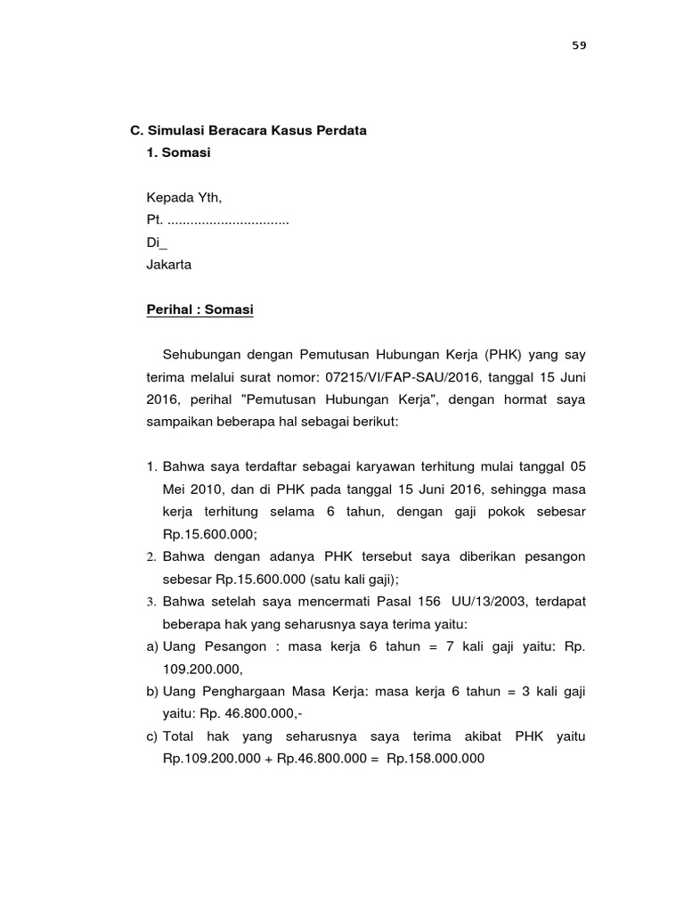 | Judul: Contoh Surat Somasi Kepada Perusahaan Contoh Surat |